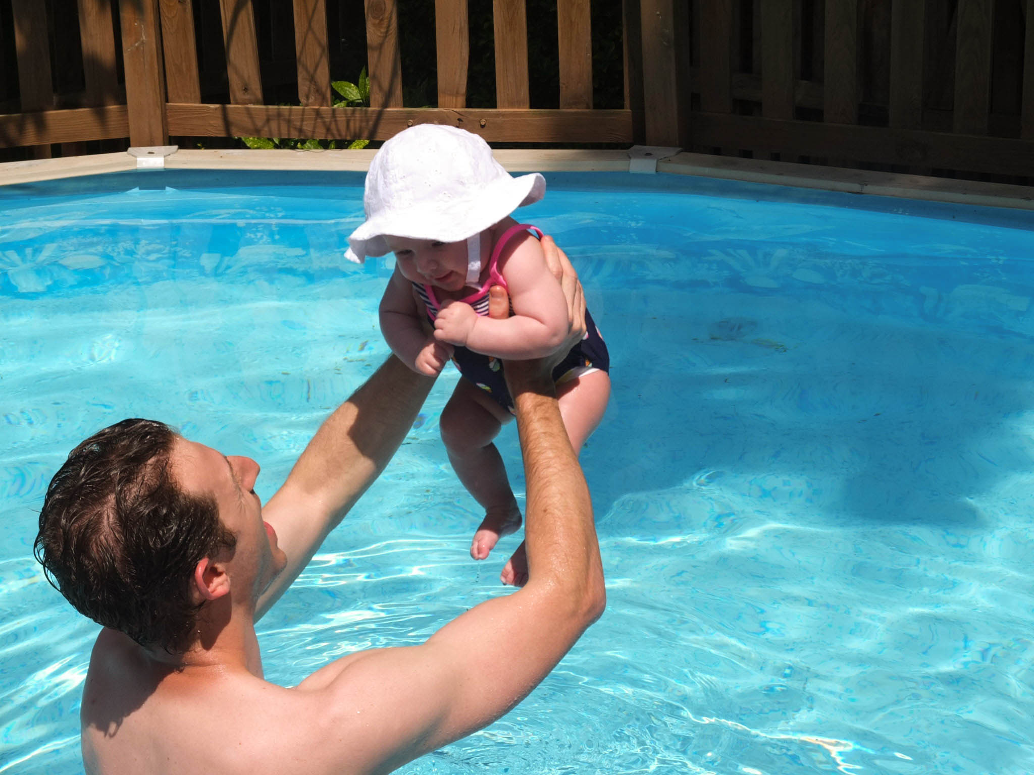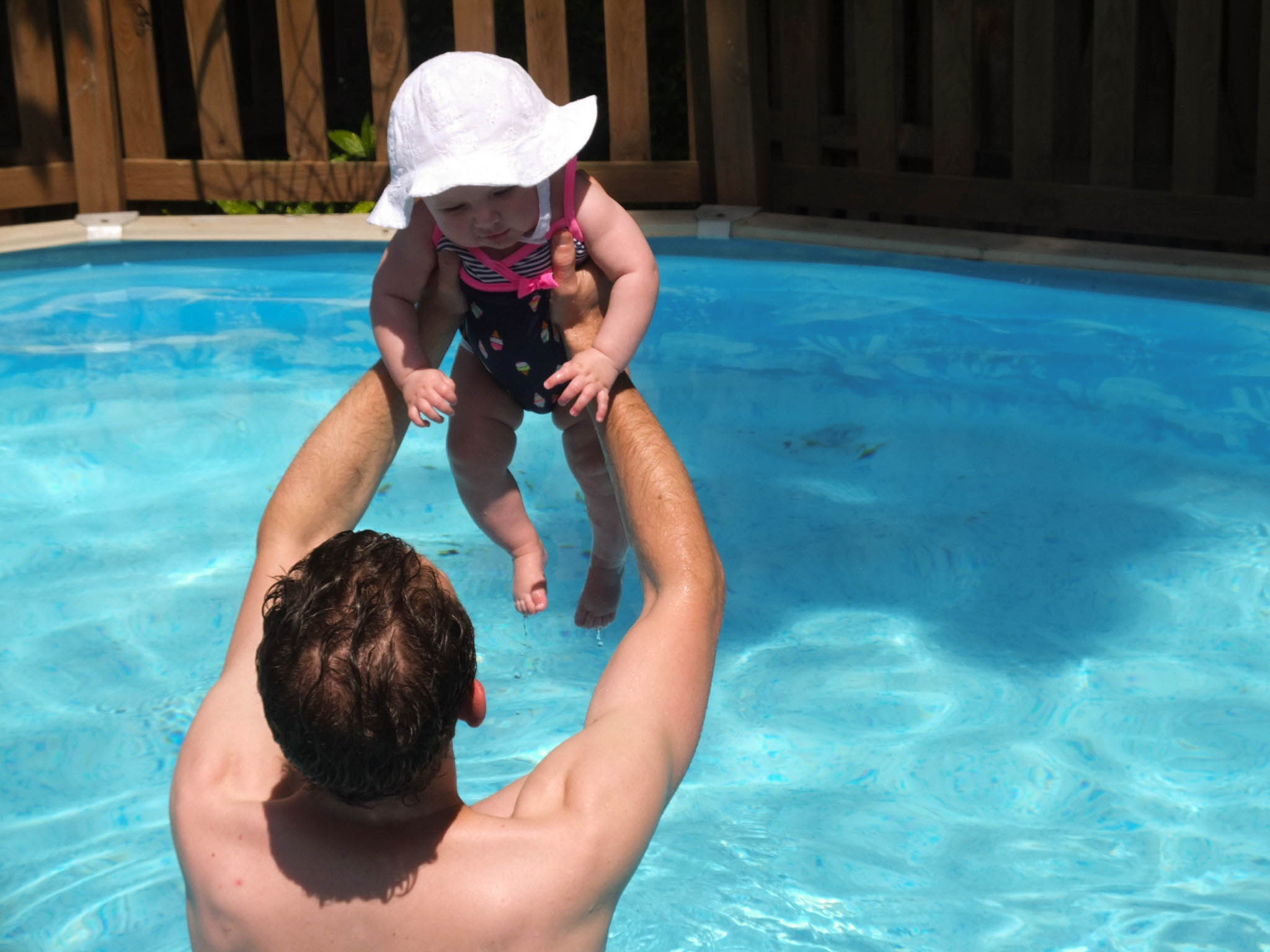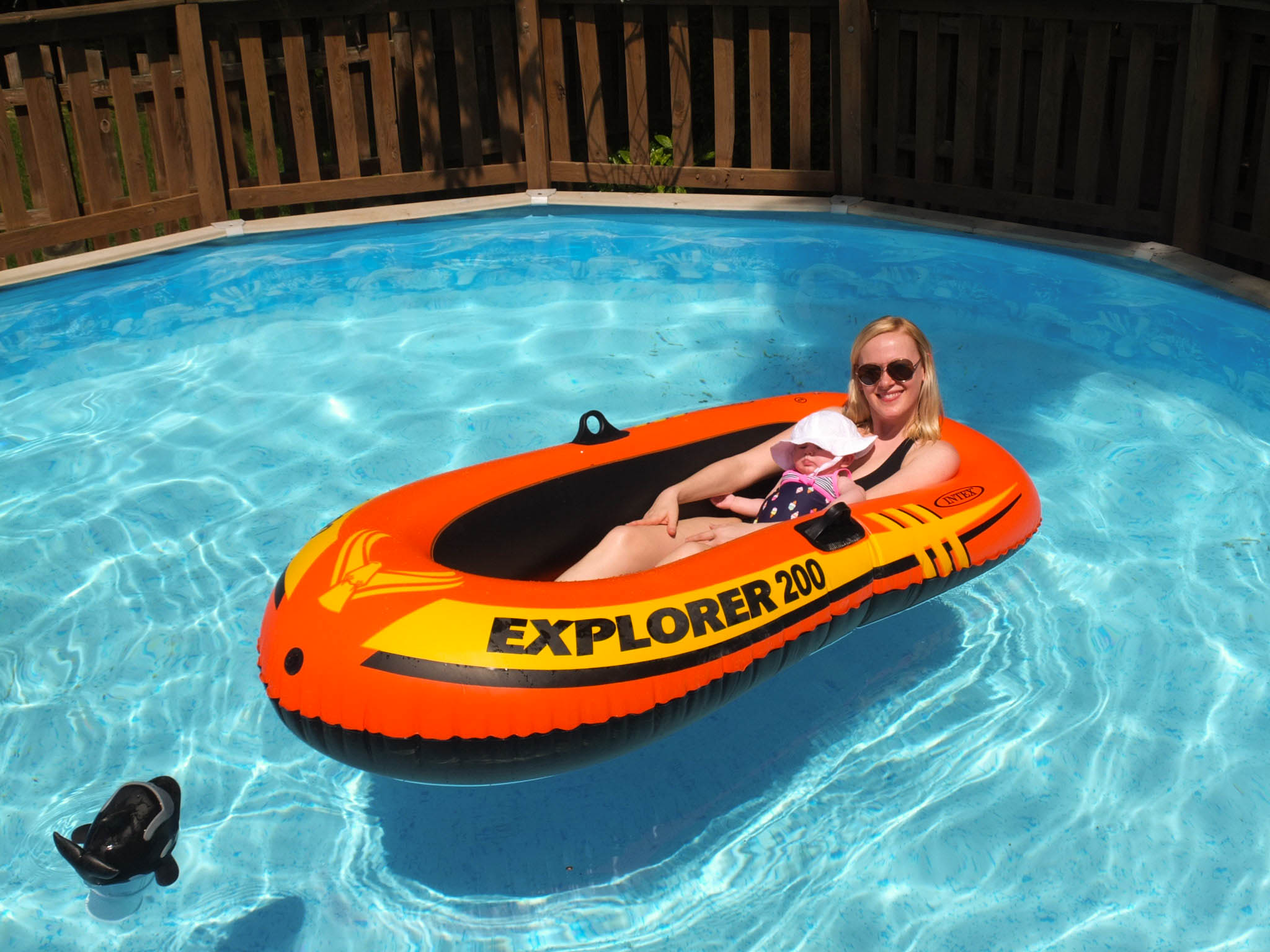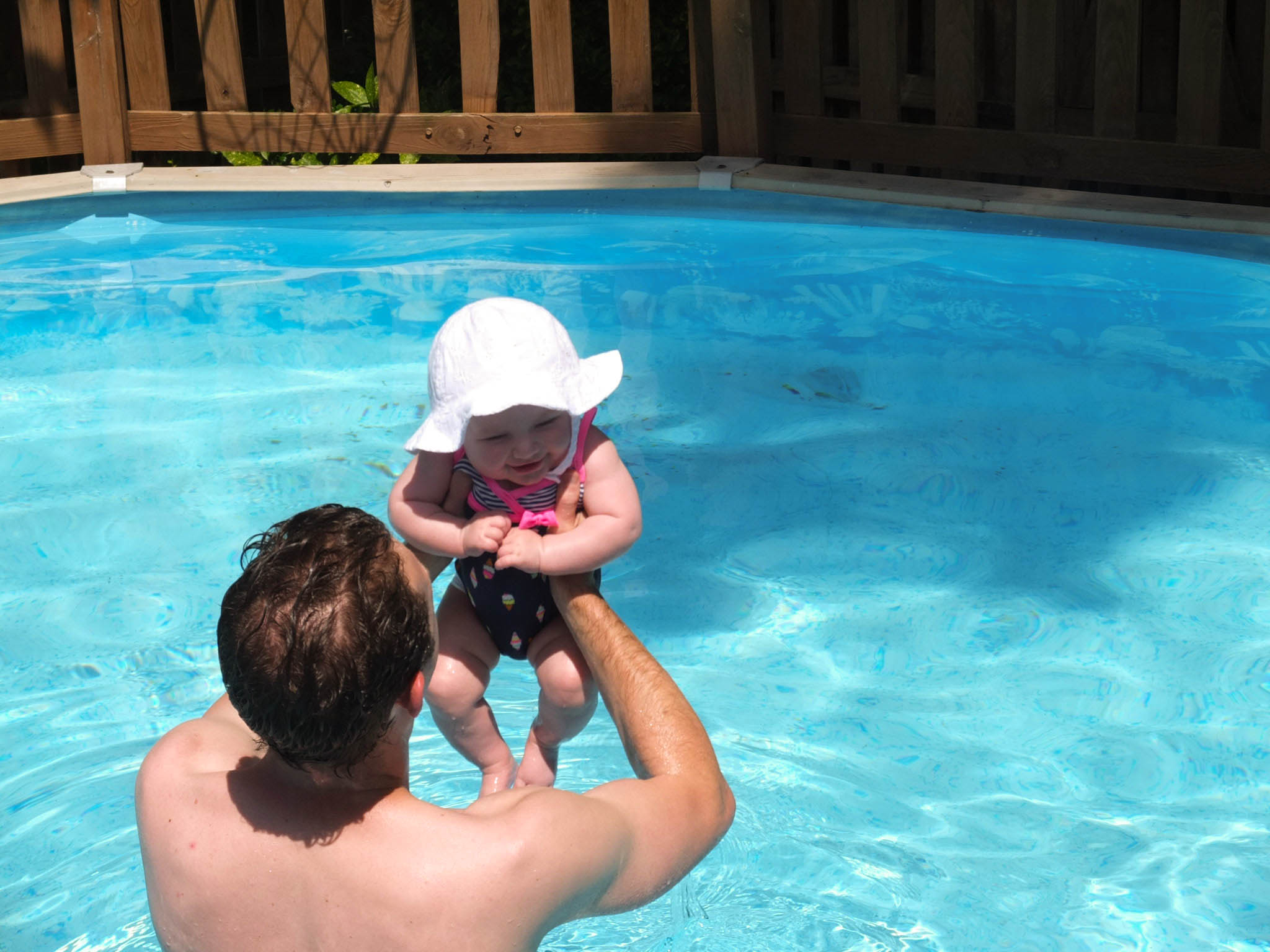 Madeline goes swimming Posted on June 28, 2014 by littlerapp under Month 5 After a morning spent hiking, Maddie went for her first swim in our pool. Daddy got in the water with her. Mommy paddled her around in our pool kayak. She didn’t seem to mind the water and liked it when she was held up in the air and then dipped in. Share this: Click to share on X (Opens in new window) X Click to share on Facebook (Opens in new window) Facebook Like Loading... Related