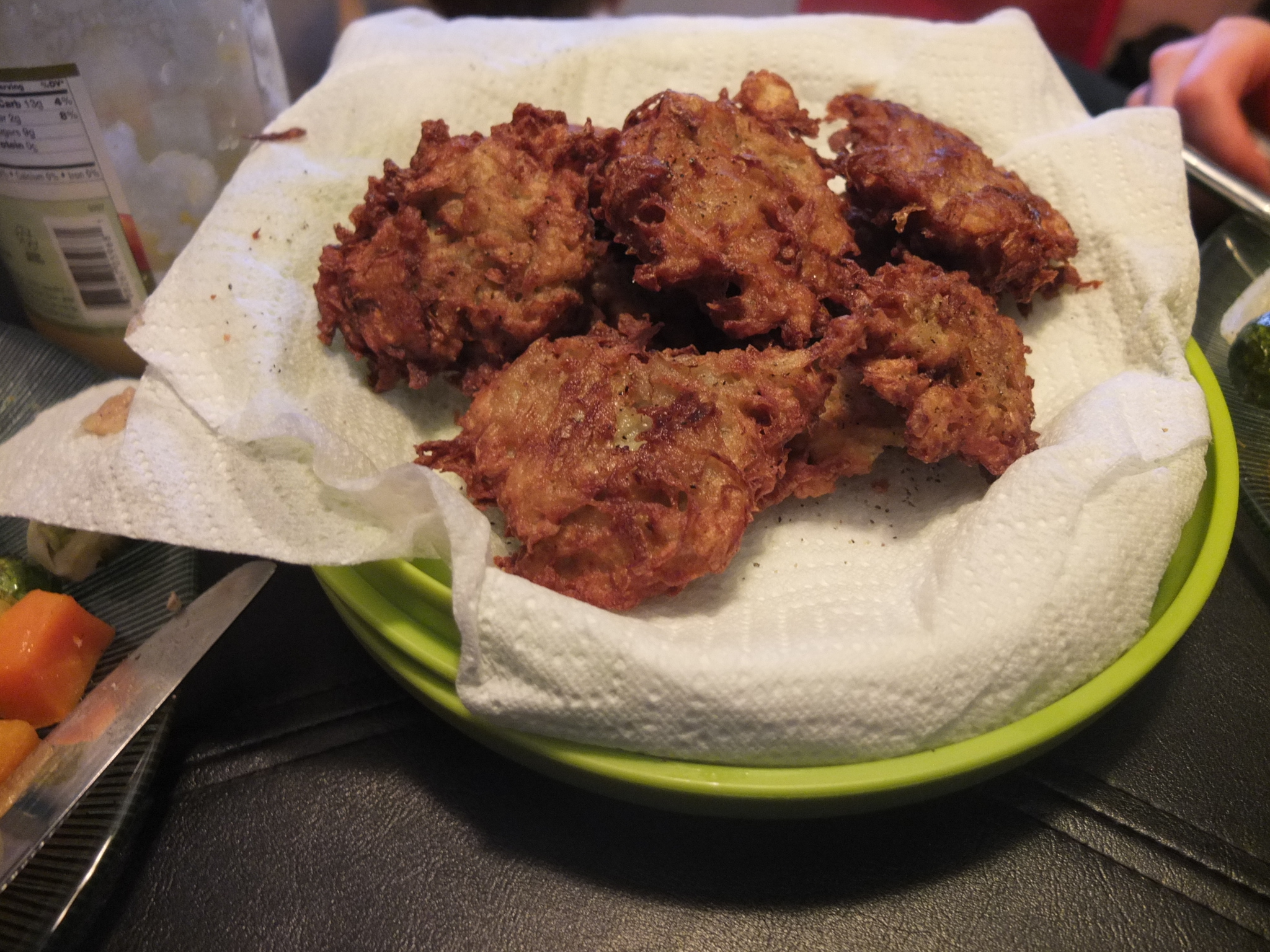 …and then with eating latkes – 100% homemade by mommy and 100% delicious!
