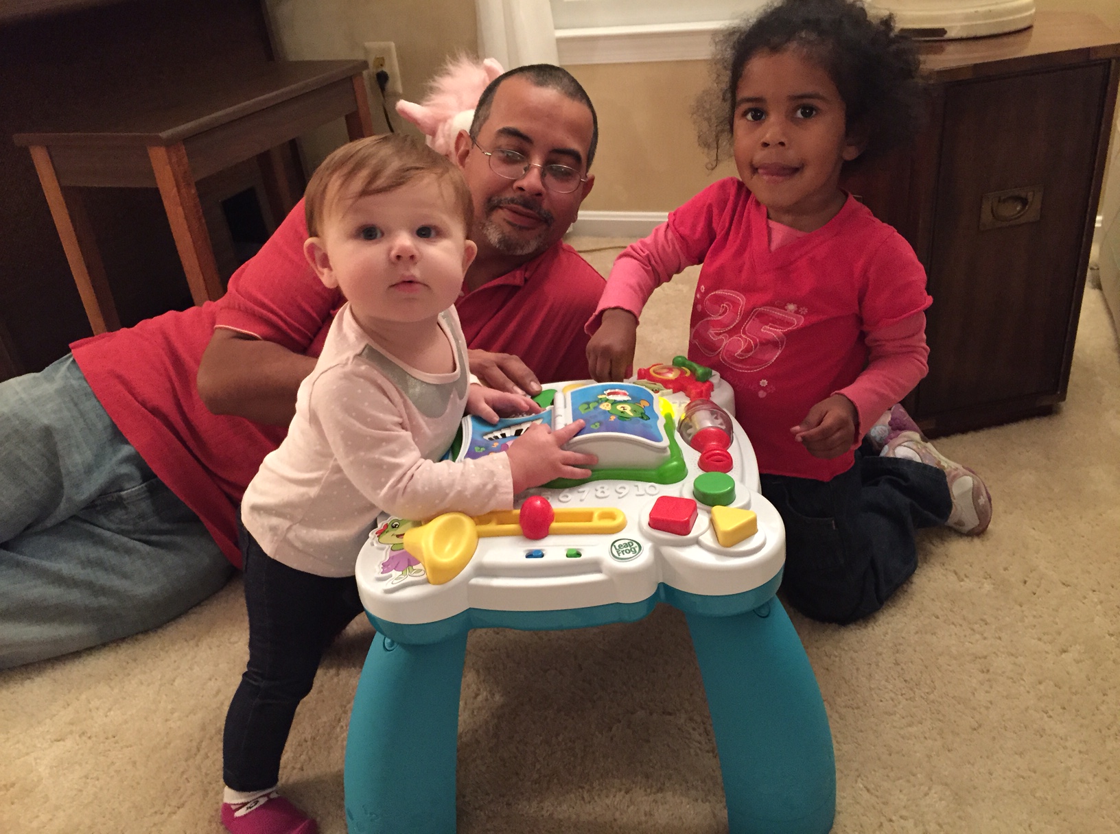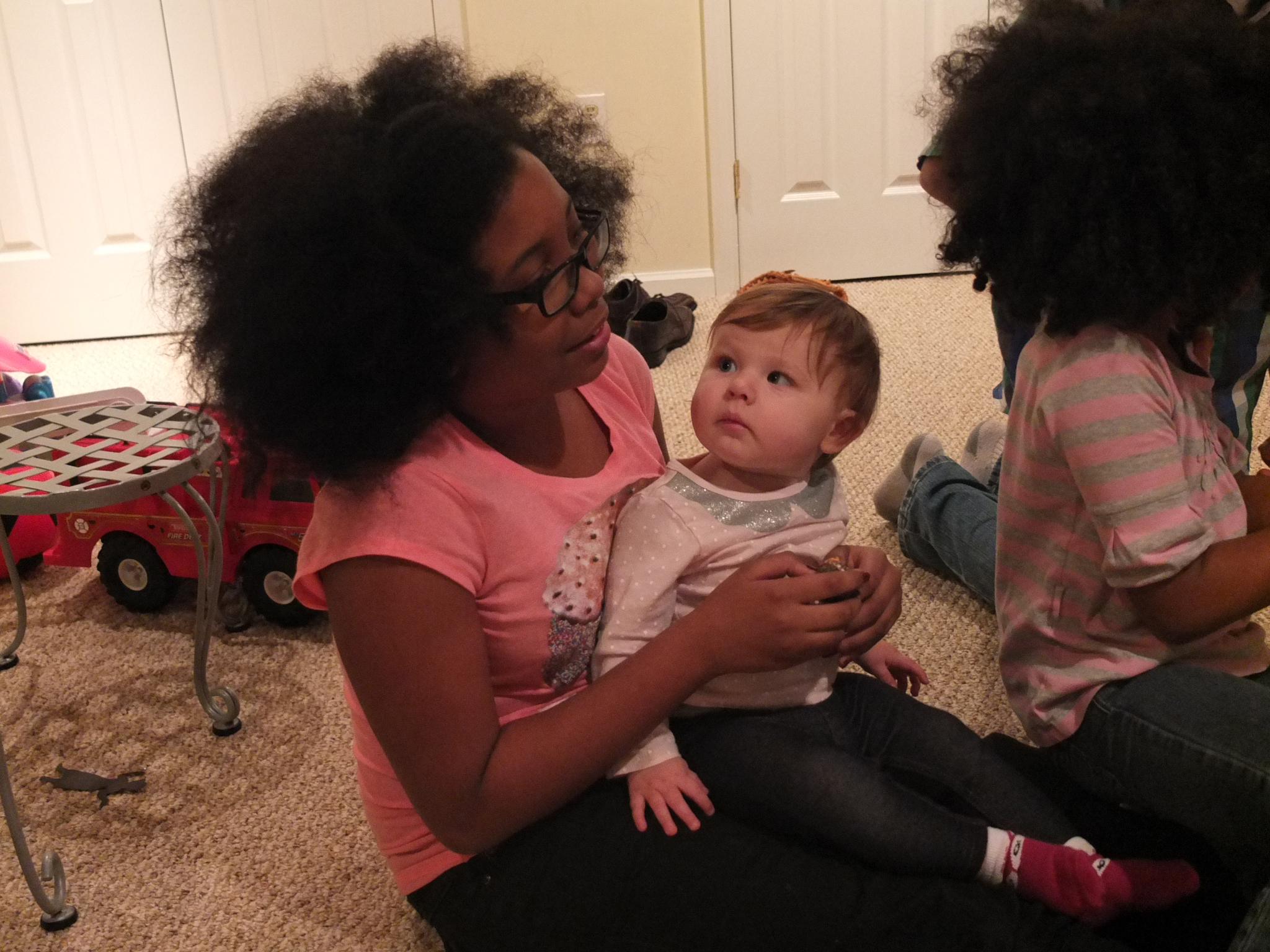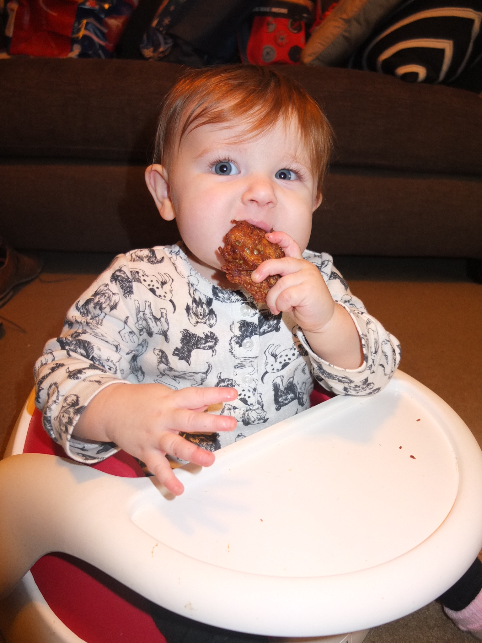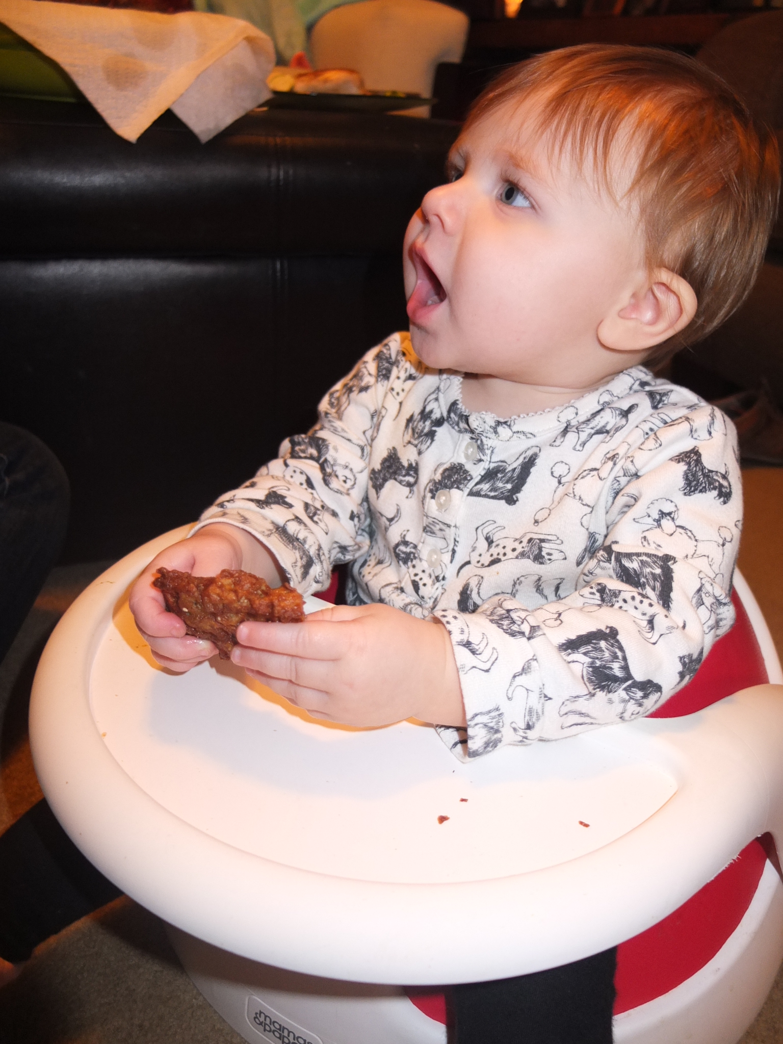 Maddie loves to eat. She had turkey, cranberries and mashed potatoes for Thanksgiving. She’s also been eating waffles, chicken and yogurt drops. When she’s not eating in the kitchen, she’s playing on the floor with empty Tupperware containers and boxes that hold Ziplock snack baggies.