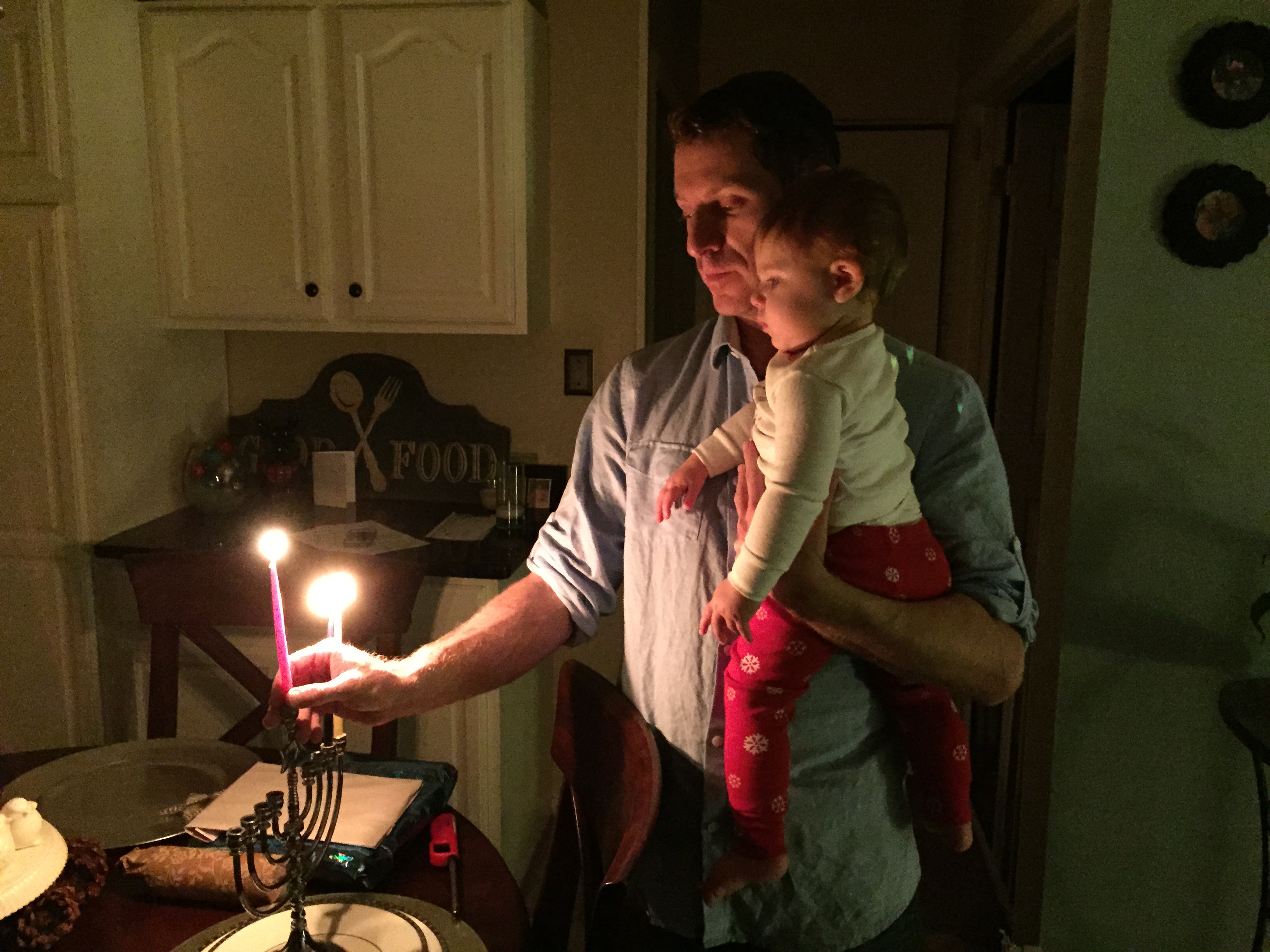Madeline’s first Chanukah was kicked off in glorious fashion…first with the lighting the Menorah which included an attempt at wearing a yamaka…