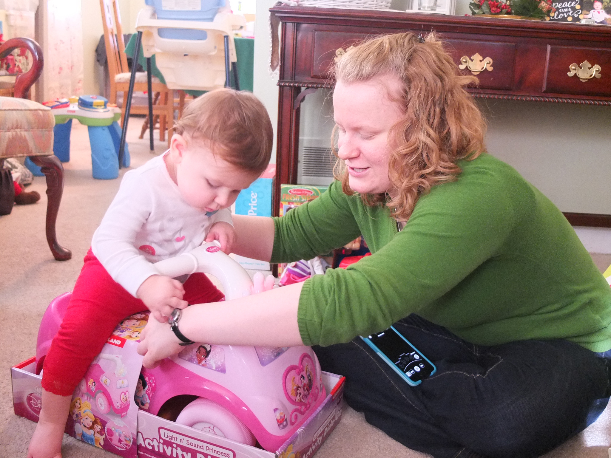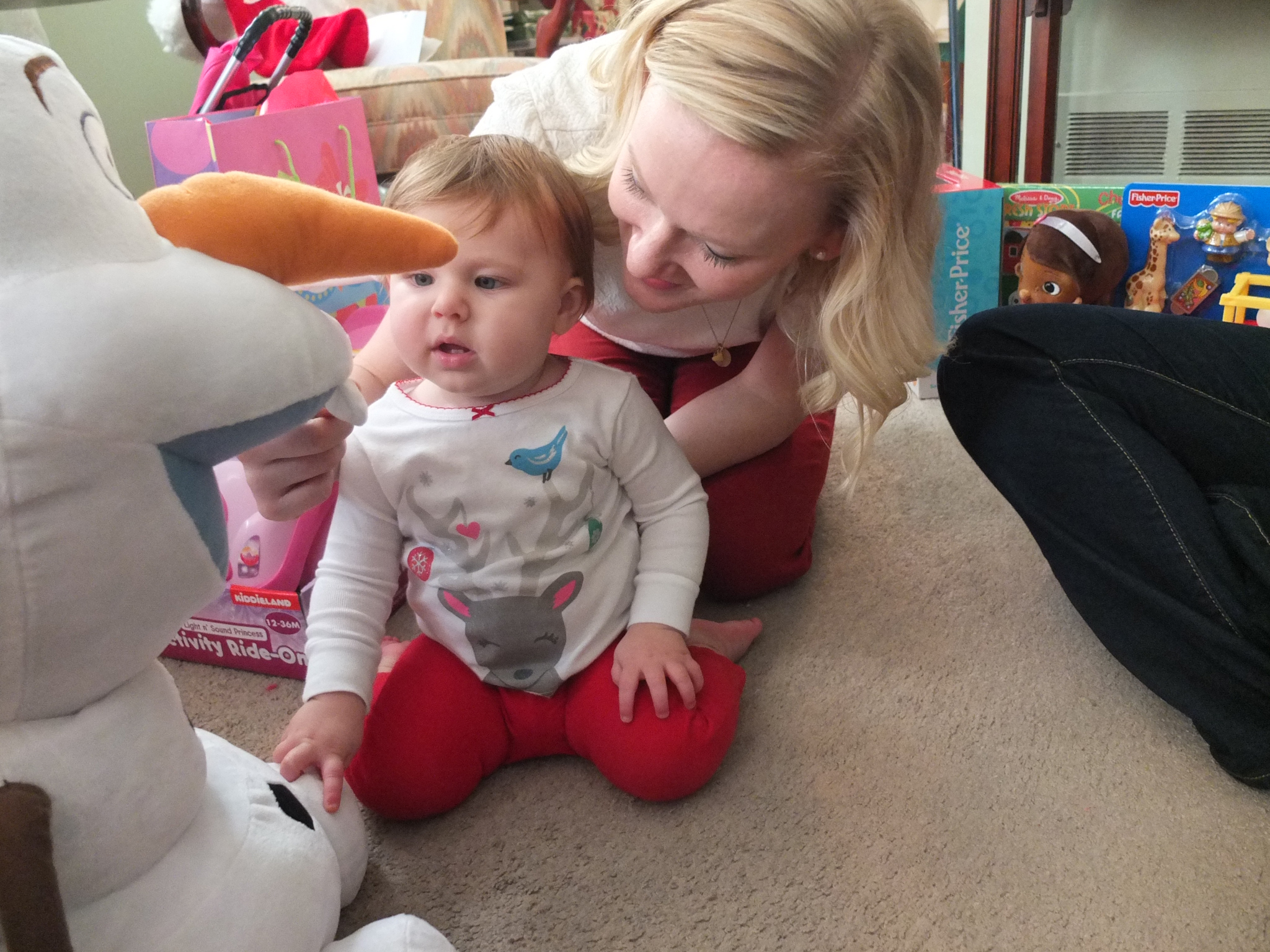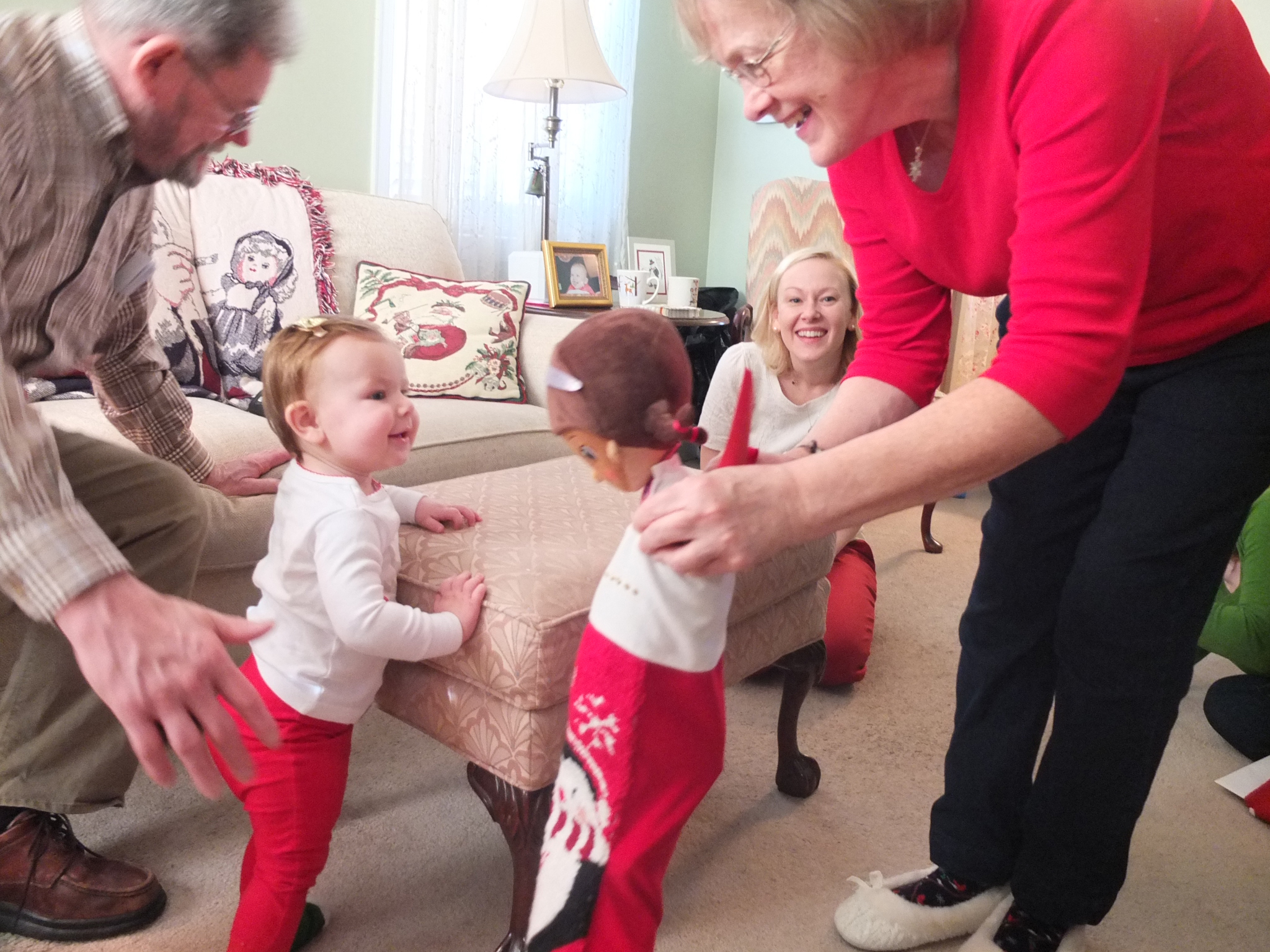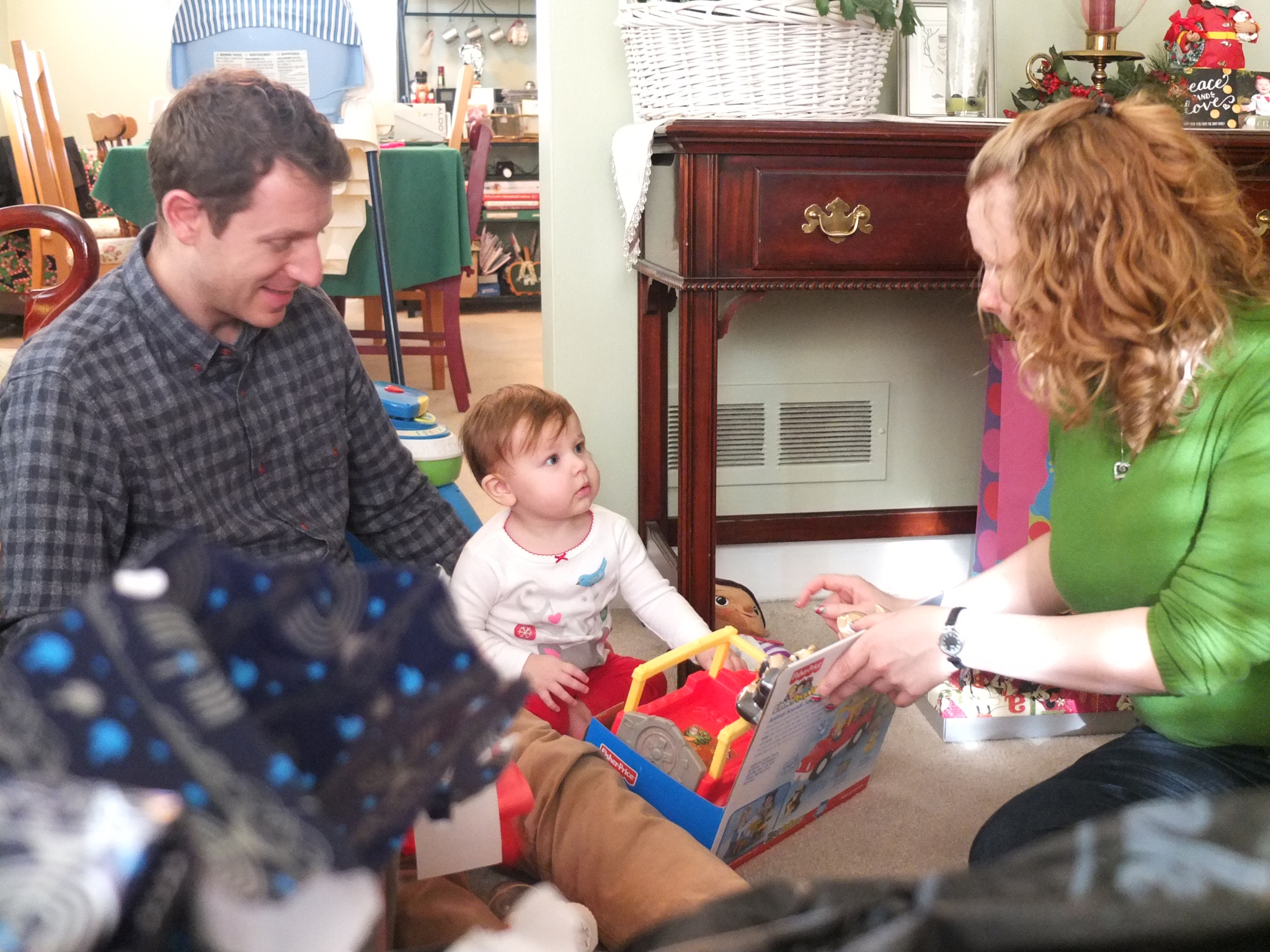 We had a great time Christmas morning at Grandmum’s house. Maddie got to open her first ever stocking and loved all of her wonderful gifts. She had a great time playing with her new toys and the paper and the bags they came in too! After a nice nap we visited Aunt Nancy’s house to see Mommy’s aunts, uncles and cousins. While we were there, Maddie got to meet her newest cousin, baby Charlotte!