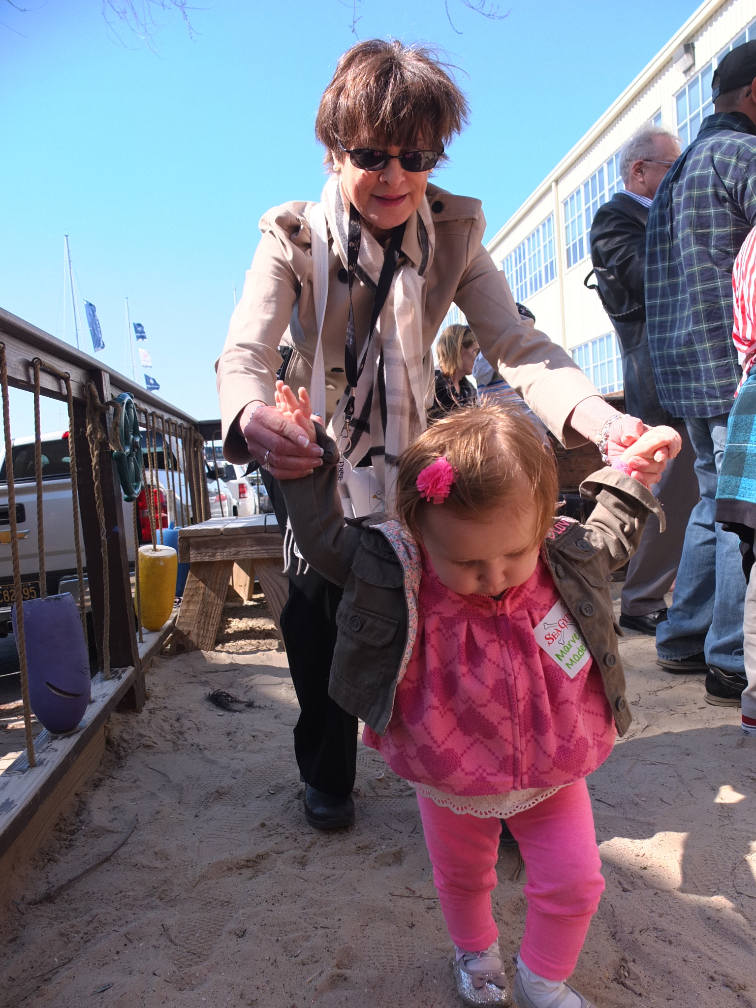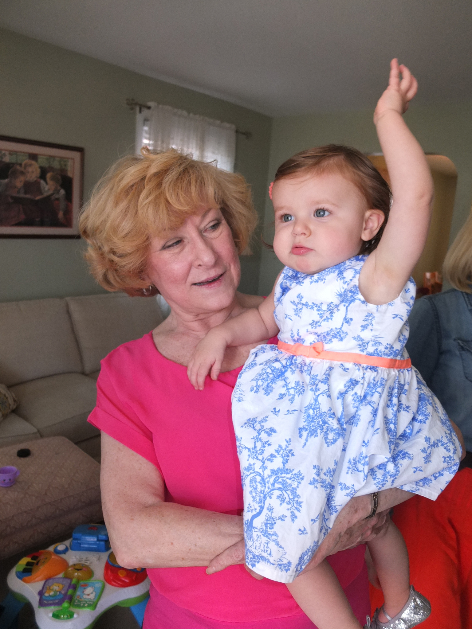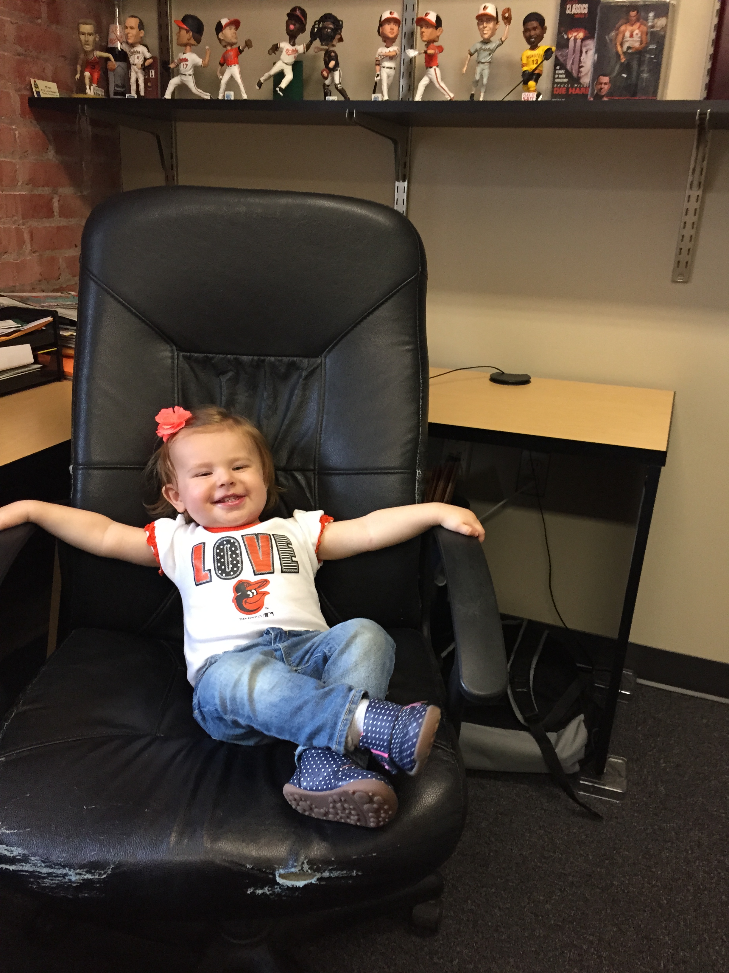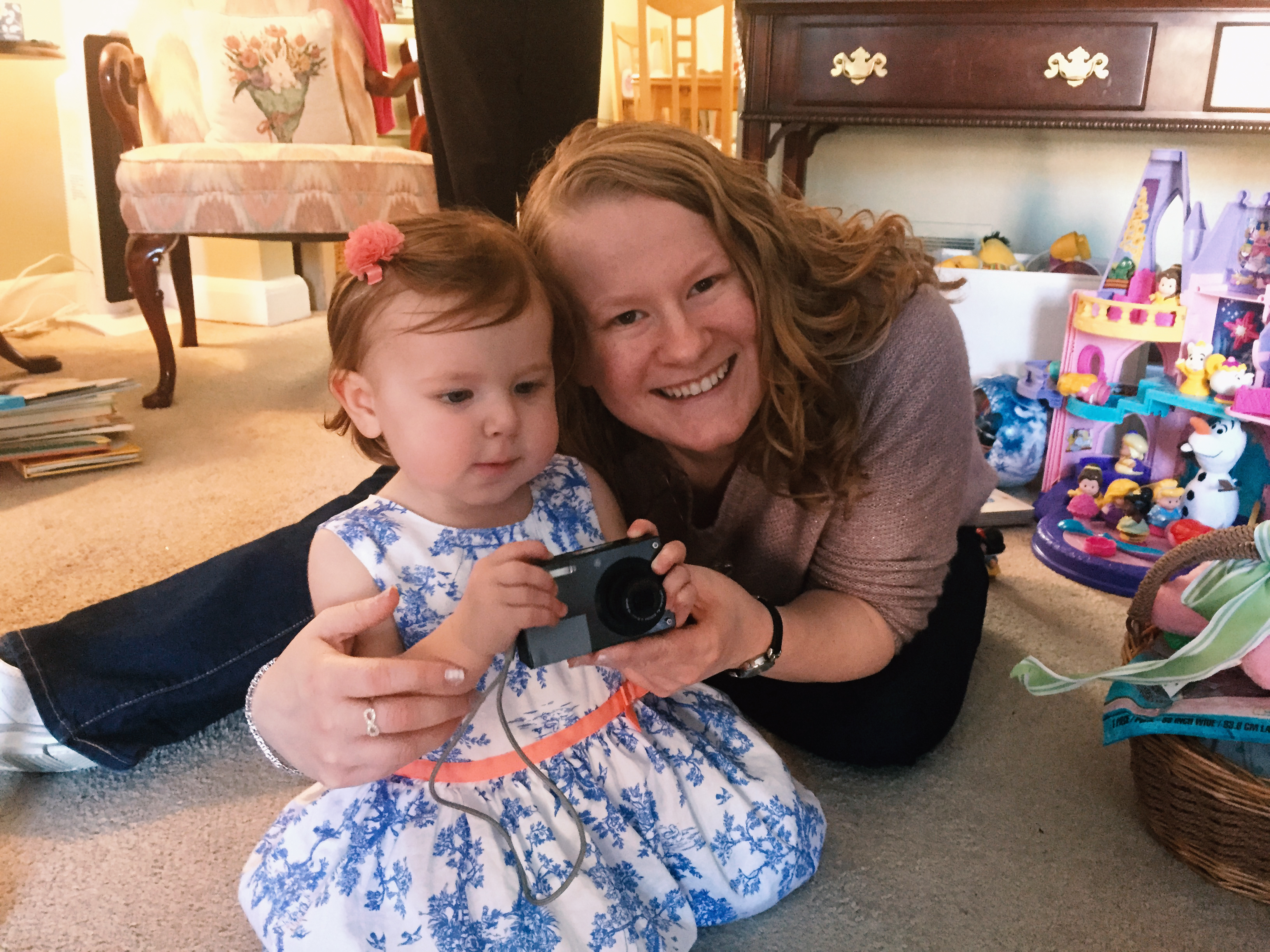 She can “drive” her Disney princess mobile and has a Doc-mobile at our house now thanks to Nana and Poppo. She’s got an arm on her and likes playing ball, throwing it to others and kicking it too. She doesn’t stay in one place for long and wants to “walk!” “walk!” “walk!” constantly.