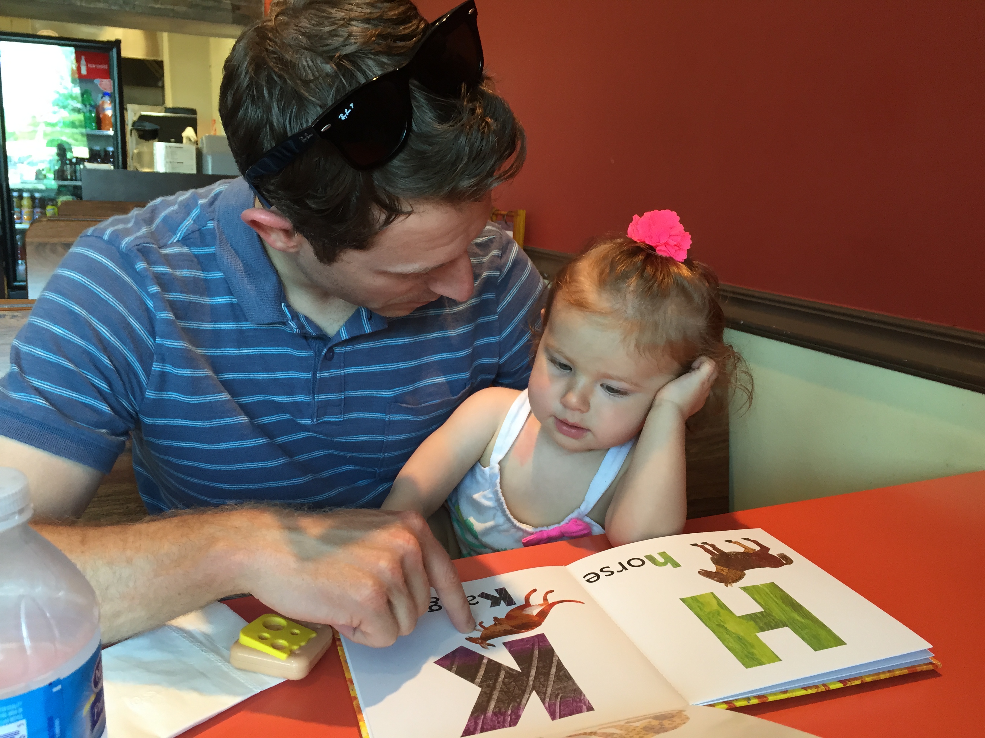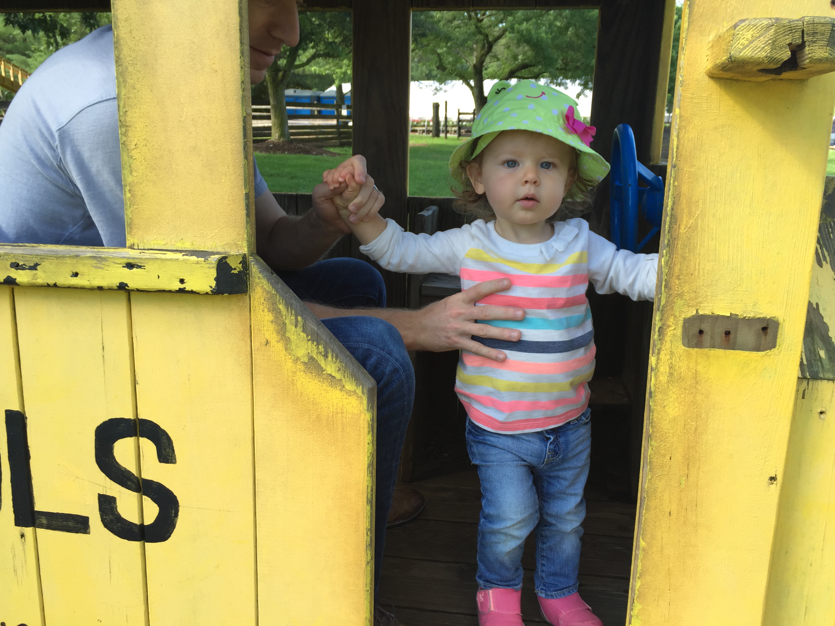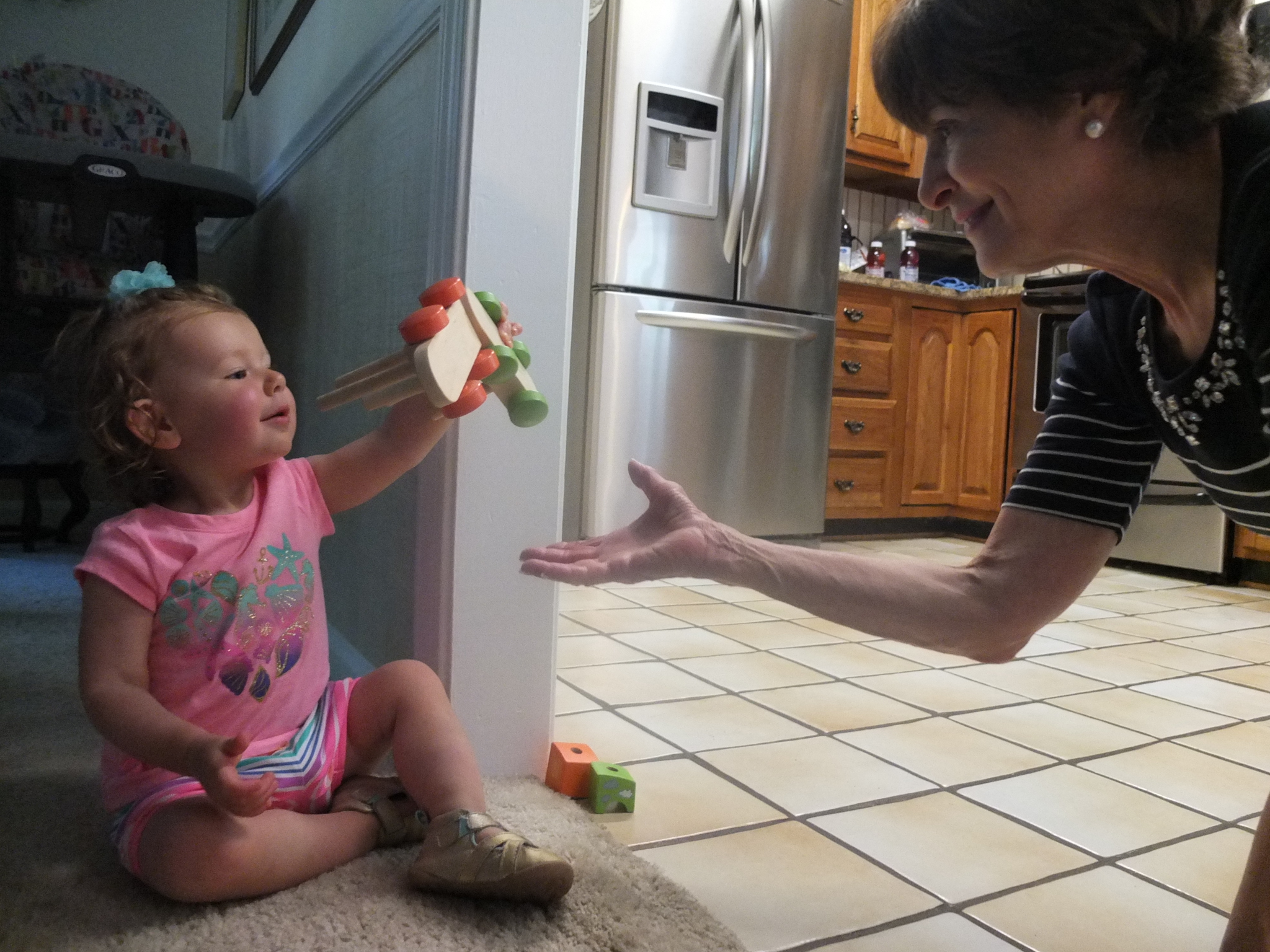Madeline will repeat just about any word you throw at her these days. She’s been putting a few words together as well. Most notably “Humpty Dumpty”, “Let it Go” (from the movie Frozen) and “Go Away.” She tells the ants on Gaga’s porch to “go away!” She has amazed us with her memory. We have started playing a game where we will sing or read her something and leave off the last word for her to fill in. She constantly surprises us with how much she knows!