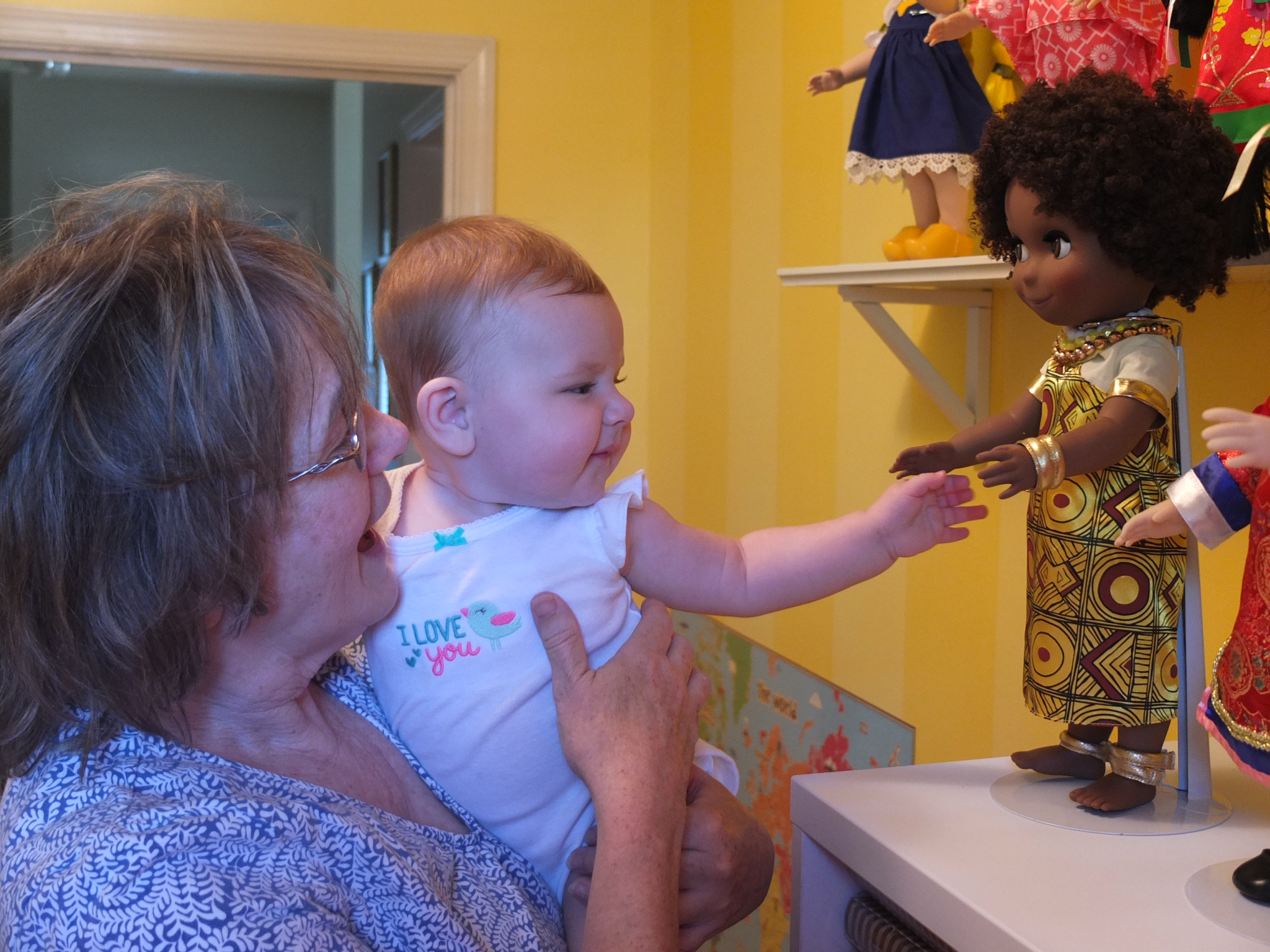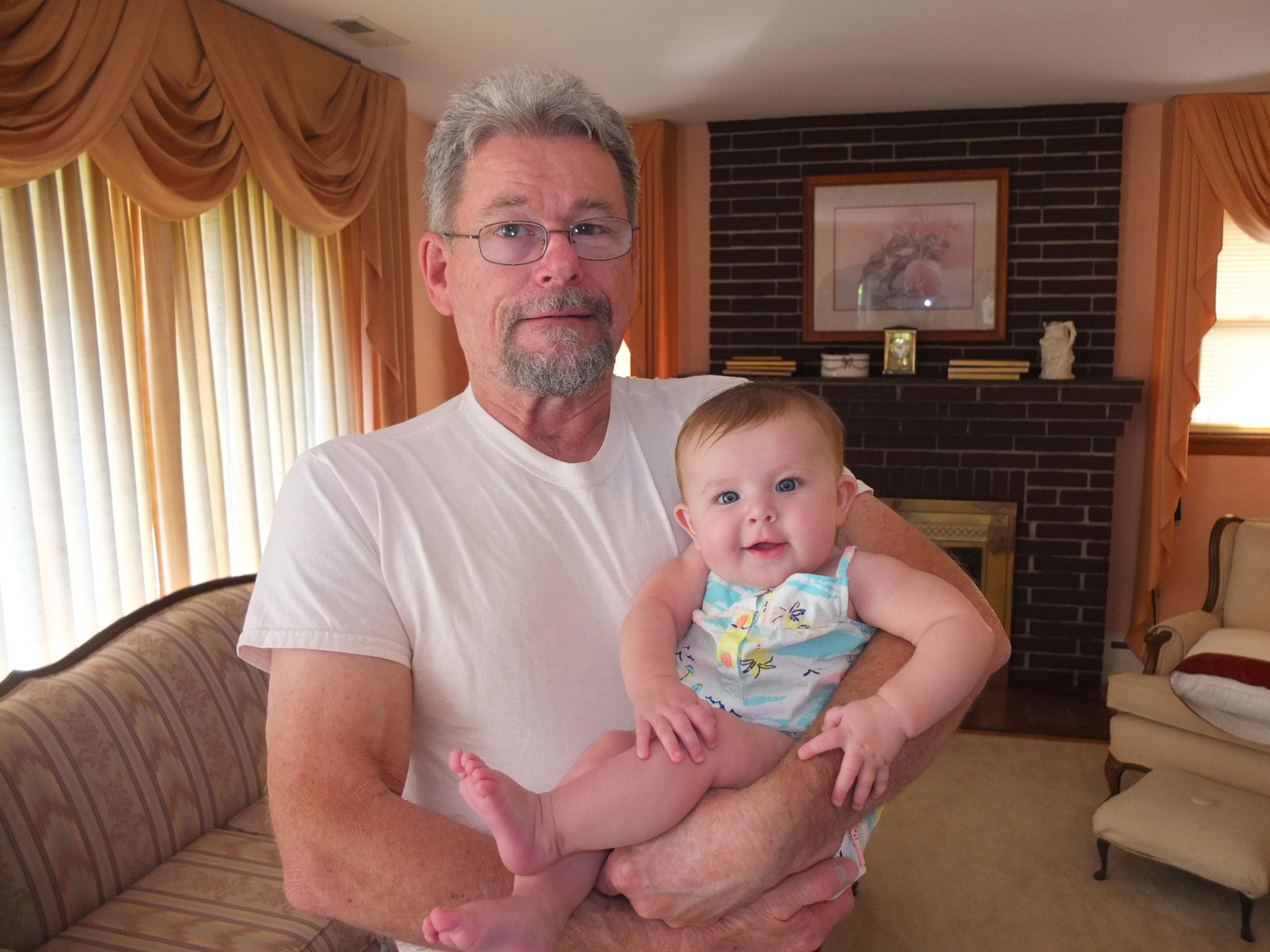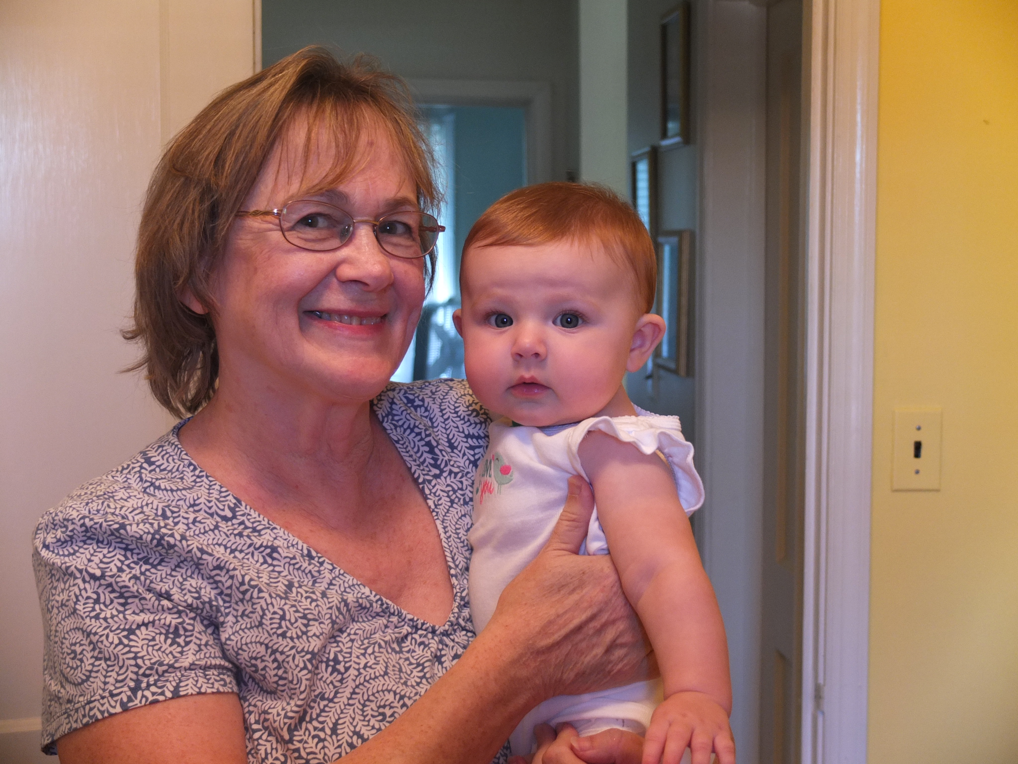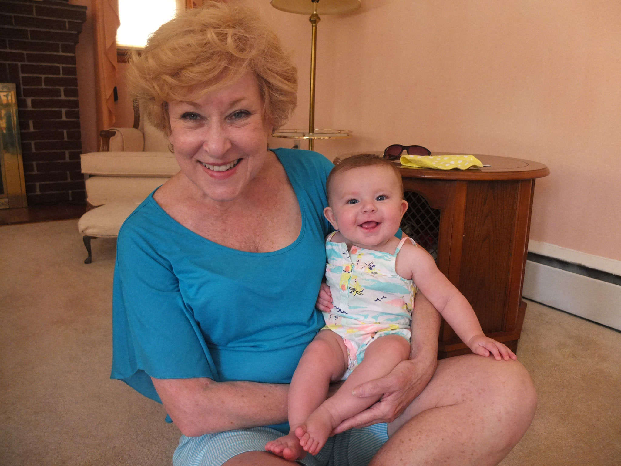 While awake, she is still moving, moving, moving. She like to stand up while being supported and is surprisingly strong. She loves sitting outside on Grandmum’s porch and enjoys waiting for the ice-cream truck lady to drive by with her music playing. She waves at Maddie 🙂 Other frequent visitors include Poppy, Mr. Lee and Mrs. Shirley and Buddy the dog. (Grandmum’s neighbors)