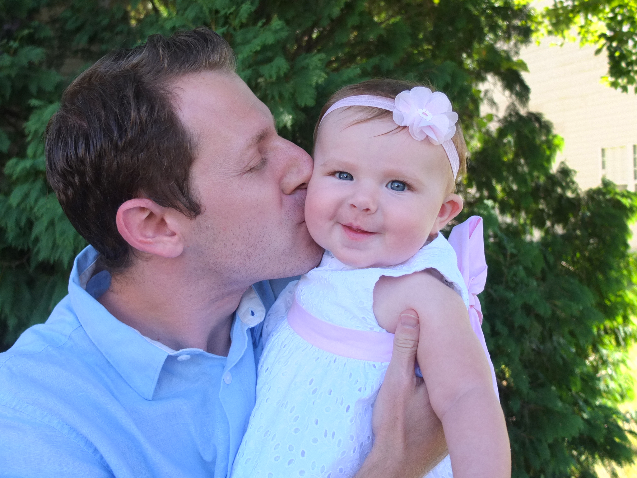 Maddie’s first tooth broke through the day she turned seven months old. She doesn’t want you to touch it or look for it, but occasionally when she’s laughing or opening her mouth wide, you can see it. She’s making lots of noise these days. Most notable are her epic raspberries. She has amazing timing and adds comedic relief to conversations with her well timed rasberries. Now that we got the ok to let her sleep on her face, she loves to sleep. She sleeps 10 or 11 hours at night. It’s a whole new world for Mommy and Daddy. She is the cutest ever when she wakes up an is disoriented. She gives the sweetest smiles when she realizes you’re next to her crib.
